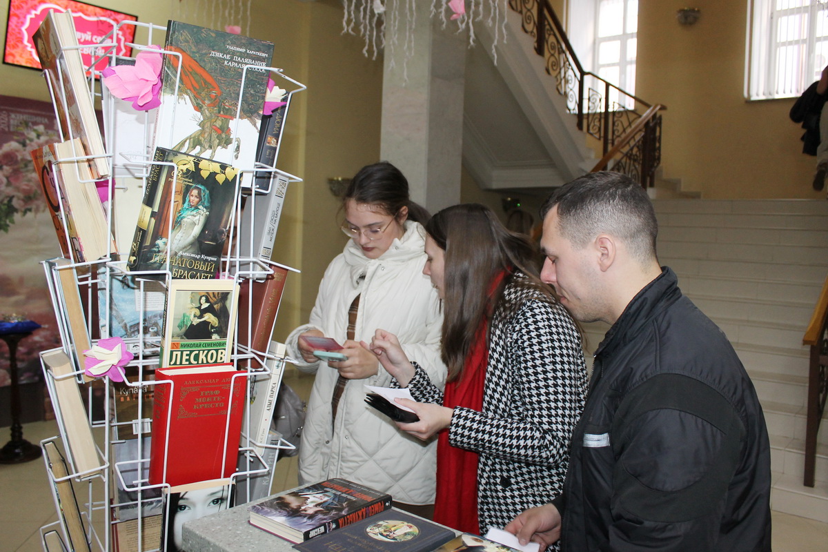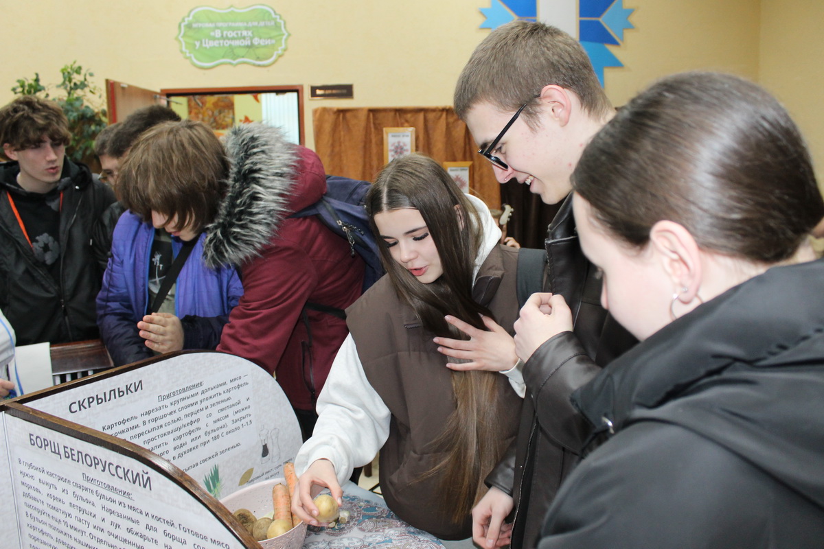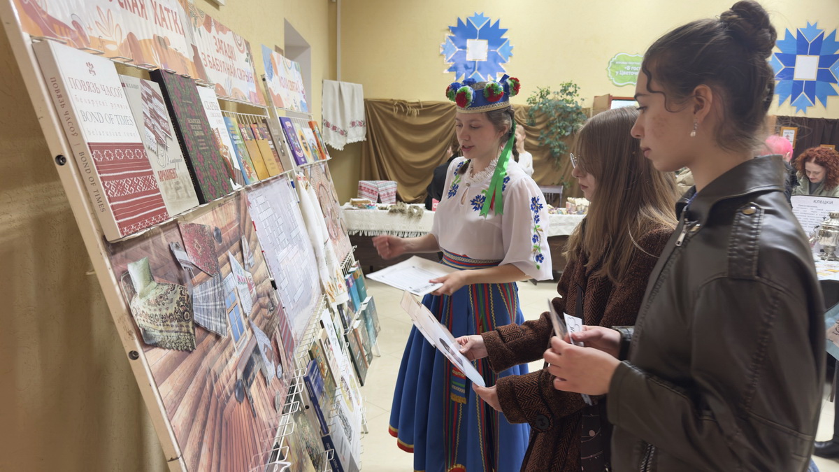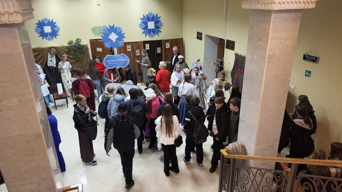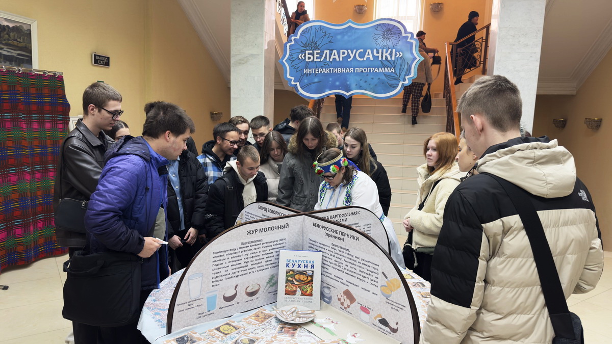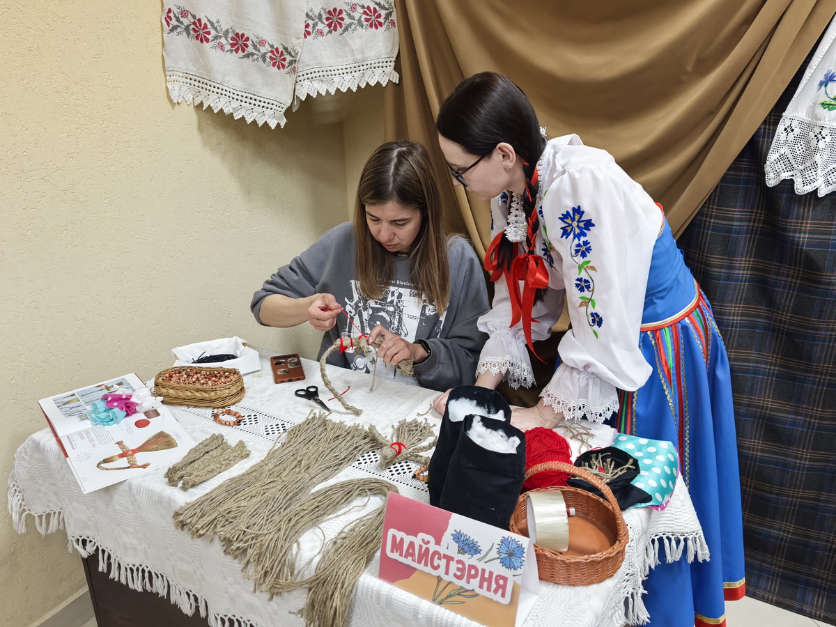 Фойе 2-го этажа библиотеки превратилось в настоящий уголок белорусской культуры. Интерактивная программа “Беларусачкі” познакомила посетителей с самобытными обычаями и народными играми. Выставки-игры “Кола святаў” и “Беларуская хатка” позволили прикоснуться к истории и традициям, а игра “Кулінарная спадчына” раскрыла секреты национальной кухни. Особое внимание было уделено женскому мастерству: мастер-класс по изготовлению оберегов подарили возможность создать что-то уникальное своими руками, а мастер-класс по завязыванию старинного женского головного убора намиток показал, что она многим очень к лицу. Завершили погружение в национальный колорит фотозона “Традыцыйны беларускі касцюм” и музыкальное сопровождение народного квартета народных инструментов «Классик-фольклор» ГУ «Городской центр культуры».